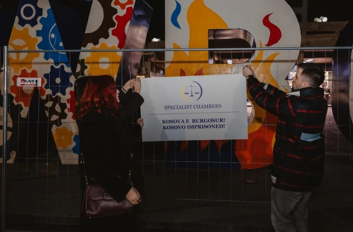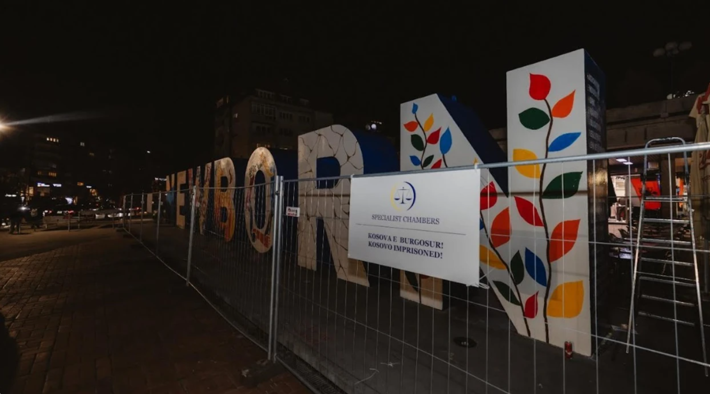 Monumenti “NEWBORN”, simboli i 17 shkurtit dhe i lindjes së shtetit të Kosovës, pas përfundimit të ngjyrosjes, sonte është “burgosur”. Aktivistët e platformës “Liria ka emër”, e kanë rrethuar simbolikisht këtë monument me rrethoja të hekurit, duke e kthyer këtë ikonë të lirisë dhe pavarësisë sonë në një imazh burgu. Në këto rrethoja është vendosur edhe tabela me logon e Dhomave të Specializuara, me mbishkrimin: Kosova e burgosur! Eliza Hoxha nga organizata “Liria ka emër”, ka thënë se ky reagim qytetar është ndaj një padrejtësie që e konsiderojnë historike dhe prek themelet e shtetit tonë. NEWBORN-i, simboli i 17 shkurtit dhe i lindjes së Republikës sonë, siç ka thënë ajo, po burgoset simbolikisht për të pasqyruar ndjenjën e padrejtësisë që qytetarët dhe Kosova po e përjetojnë përballë proceseve gjyqësore që po zhvillohen në Dhomat e Specializuara të Kosovës në Hagë. Me mbishkrimin “Kosova e burgosur”, Hoxha ka thënë se po e shprehin indinjatën lidhur me këto procese, pasi atje po gjykohen historia jonë, lufta për liri dhe procesi i shtetformimit të Kosovës. Si të paraburgosur në Hagë, që pesë vjet po mbahet Hashim Thaçi, ish-presidenti dhe kryeministri që lexoi Deklaratën e Pavarësisë së Kosovës dhe udhëhoqi procesin e shtetndërtimit, po mbahen ish-kryeparlamentarët Jakup Krasniqi dhe Kadri Veseli, si dhe ish-deputeti Rexhep Selimi. Related PostsShkurte Fejza, Ylli Limani, Mozzik dhe qindra... Këngëtarë dhe artistë të njohur nga Kosova kanë shprehur publikisht...Read moreI vazhdohet paraburgimi Hashim Thaçit, përkundër që... Gjykata Speciale ka vendosur që t’ia vazhdojë paraburgimin Hashim Thaçit,...Read moreSpecialja merr këtë vendim për Hashim Thaçin Në rastin ku Hashim Thaçit së bashku me Bashkim Smakajn,...Read more Post navigation Sa shanse ka Kosova të futet në NATO? Ambasadori jep detajet Aksident mes trenit dhe një veture në Grabovc