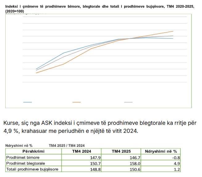 Agjencia e Statistikave të Kosovës ka publikuar indeksin e çmimeve të prodhimeve bujqësore vendore në Kosovë. Sipas ASK-së grumbullimi i të dhënave është bërë në treg, ferma dhe vende të tjera, ku çmimet e prodhimeve bujqësore mund të grumbullohen. Tutje në njoftim thuhet se në TM4 2025, indeksi i çmimeve të prodhimeve bimore ka rënie për (-0,8 %), krahasuar me periudhën e njëjtë të vitit 2024. “Prodhimet që krijojnë bazë për indeksin e çmimeve të prodhimeve bujqësore janë ndarë në dy grupe kryesore: Prodhimet bimore dhe ato blegtorale. Në kuadër të prodhimeve bimore, çmimet janë grumbulluar për këto grupe: drithëra, bimë foragjere, perime, patate dhe pemë. Në prodhimet blegtorale çmimet janë grumbulluar për blegtorinë dhe prodhimet blegtorale. Në kuadër të blegtorisë, çmimet grumbullohen për katër kategori të kafshëve: gjedhe, dele, derra dhe pula. Këto çmime janë bazuar në peshën e gjallë të kafshëve. Po ashtu, në kuadër të prodhimeve blegtorale, çmimet janë grumbulluar për: qumësht, vezë dhe mjaltë”, thuhet në njoftim. /Zëri i Drenices/ Post navigation Mikel Arteta dhe lëvizja e pazakontë që bindi Riccardo Calafiorin të zgjidhte Arsenalin Shtyhen afatet për tatimin në pronë për vitin 2026