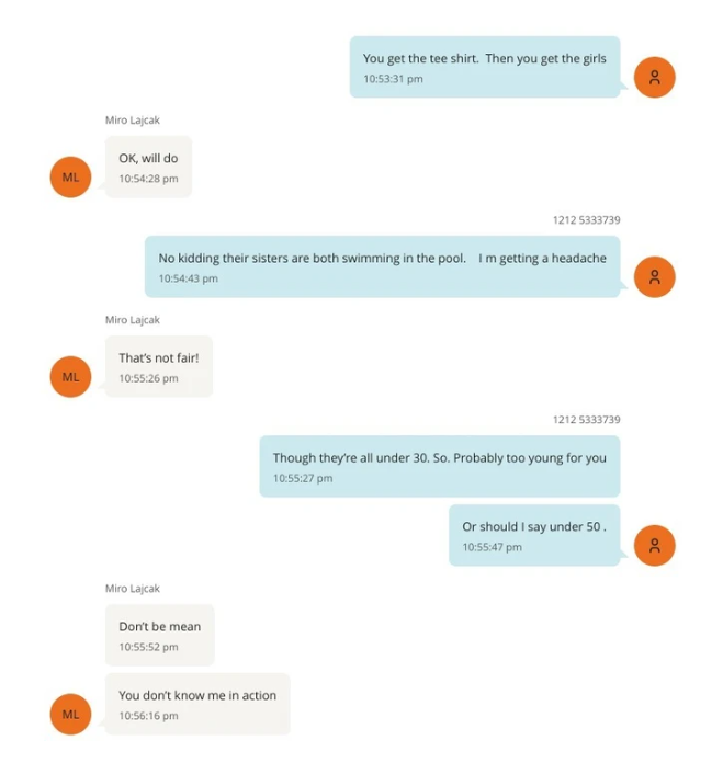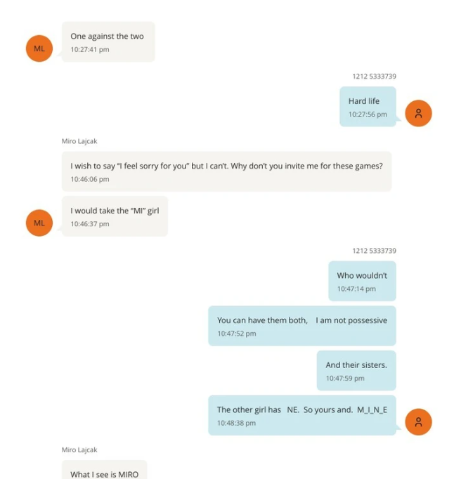 Në një tjetër mesazh, Lajçak i shkruan Epsteinit se nuk kishte asnjë vajzë me vete në atë moment. Epstein i përgjigjet se ishte me dy vajza, dhe kjo gjë Lajçakut i duket “padrejtësi”.