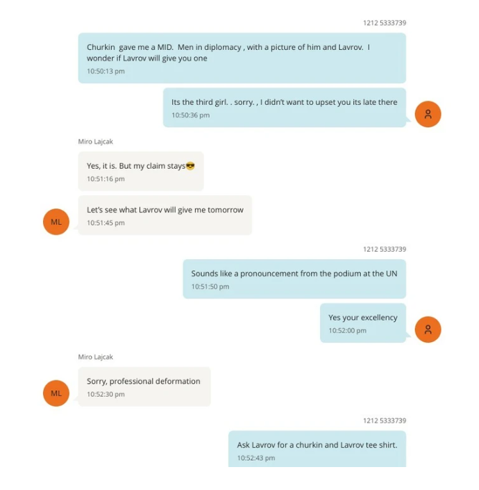 Në vitin 2018, ministri i Jashtëm i Sllovakisë, Miroslav Lajçak, i dërgoi pedofilit të dënuar Jeffrey Epstein një mesazh nga Kievi, duke shkruar “Përshëndetje nga Kievi. Thjesht dua ta konfirmoj se vajzat janë të mrekullueshme si gjithmonë”.